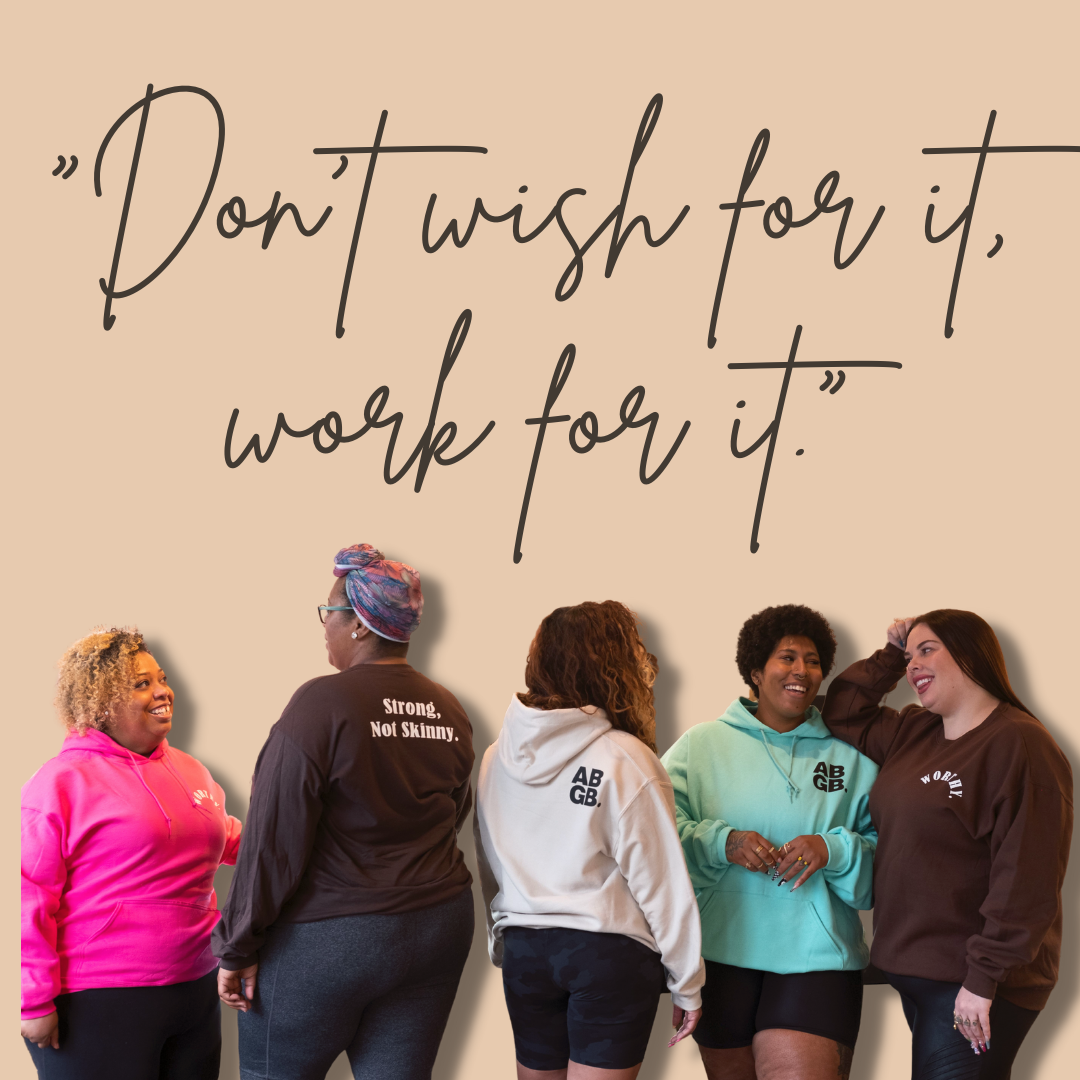 "Being a plus size woman with PCOS it is often times difficult for me to find athletic wear that fits around my tummy area. Hoodies either fit like a crop-top or don't fit just right and I am always having to readjust. I came across ABGB and Bee's contagious energy. I purchased her ABGB purple sweater AND I AM IN LOVE! It's roomy but not TOO roomy. I'm obsessed."